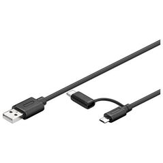 Καλώδιο USB Goobay USB-A - microUSB + USB-C 1 m Μαύρο (71892)