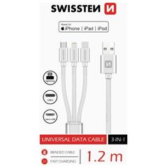 Καλώδιο USB Swissten USB-A - USB-C + micro-B + Lightning 1.2 m Ασημί (SV0153259010)