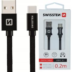 Καλώδιο USB Swissten USB-A - USB-C 1.2 m Μαύρο (SW-QU-TYPC-3.1-1.2m-BK)