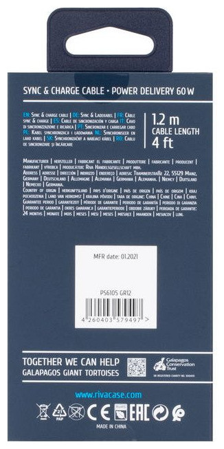 ΚΑΛΩΔΙΟ USB-C ΣΕ USB-C 1.2M/ΓΚΡΙ PS6105 GR12 RIVACASE