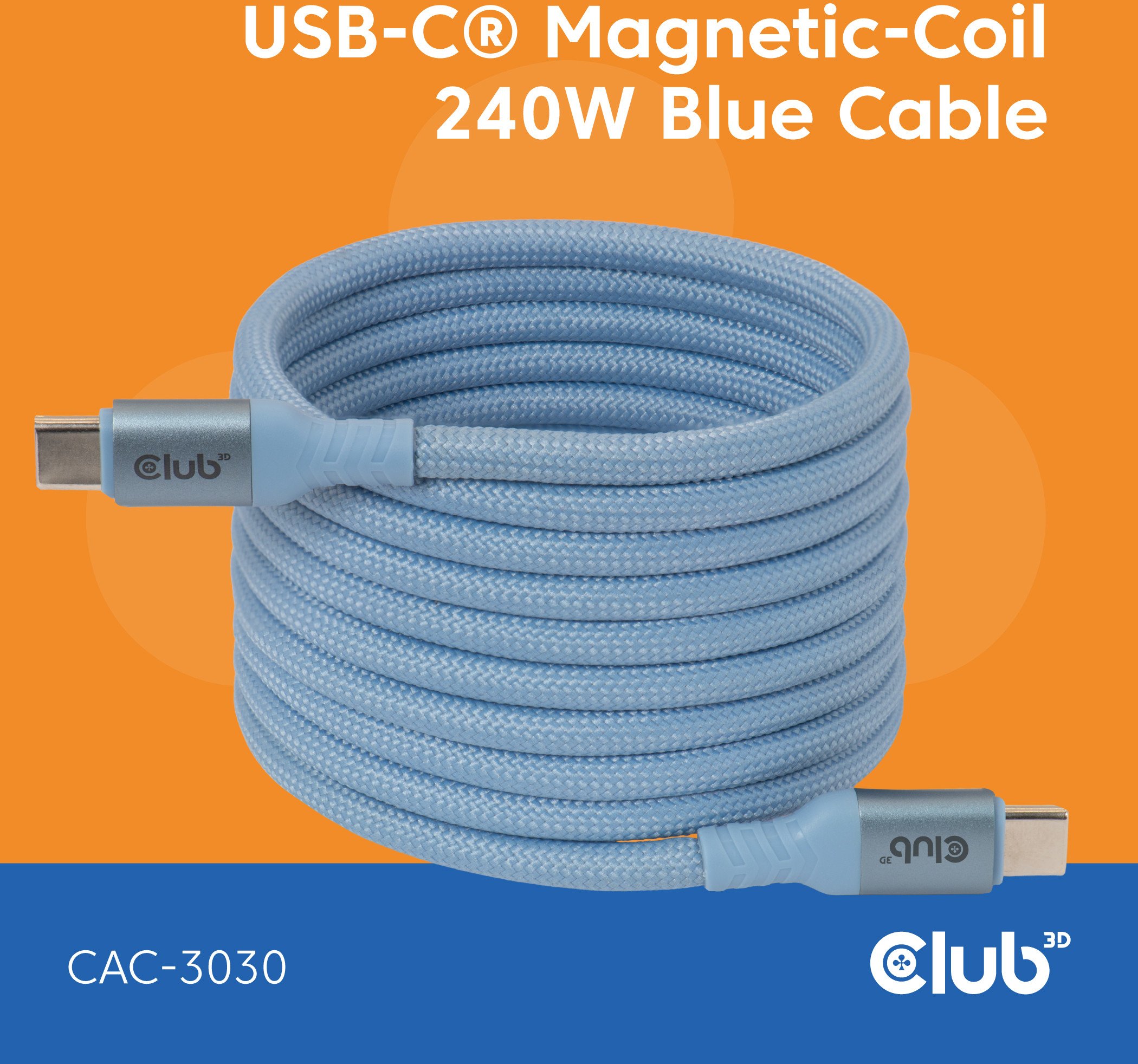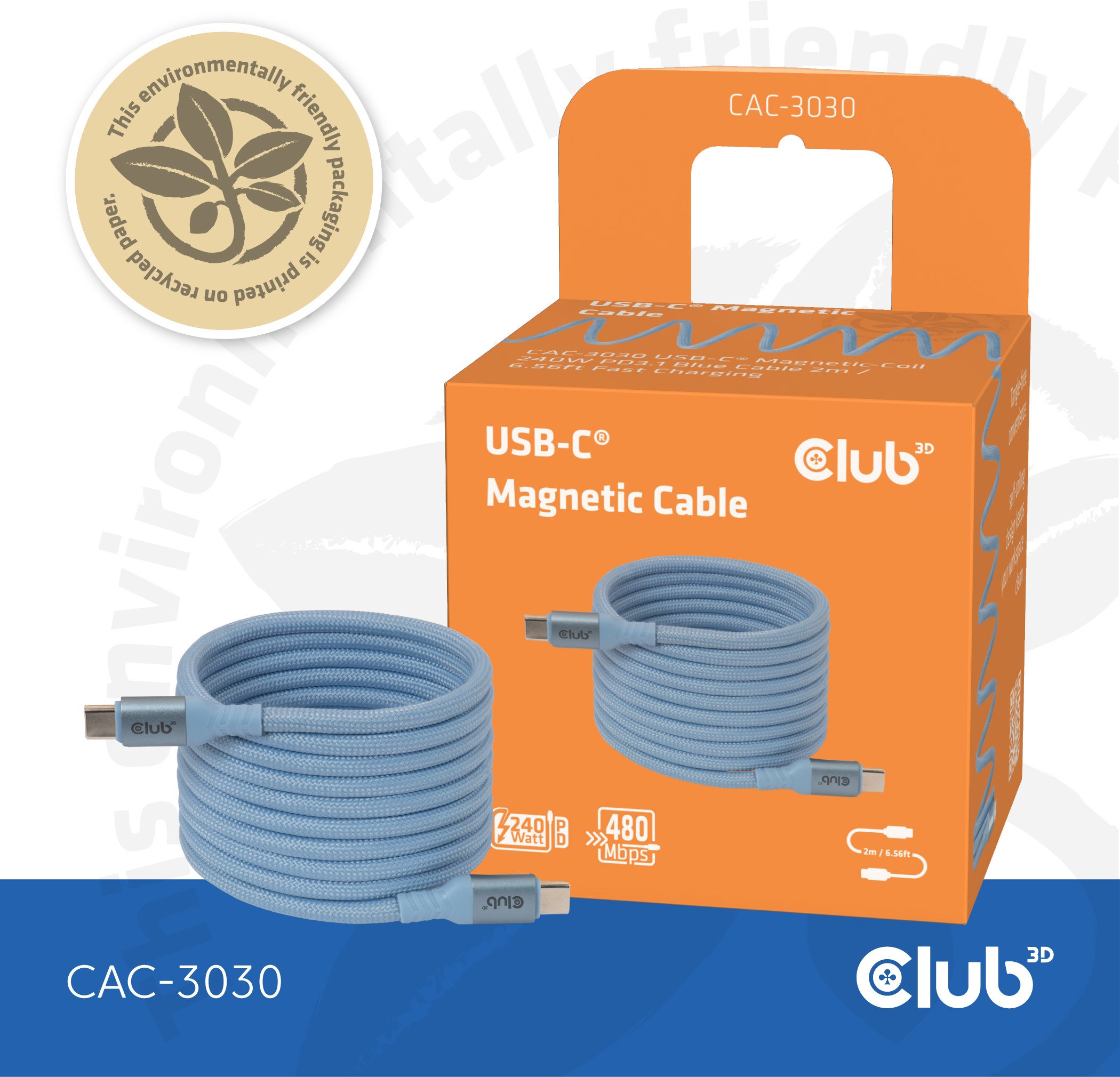 Club3D Lifestyle USB-C Μαγνητικό Καλώδιο 240W 2m μπλε St/St