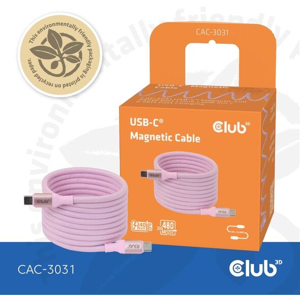 Club3D Lifestyle USB-C Μαγνητικό Καλώδιο 240W 2m ροζ St/St