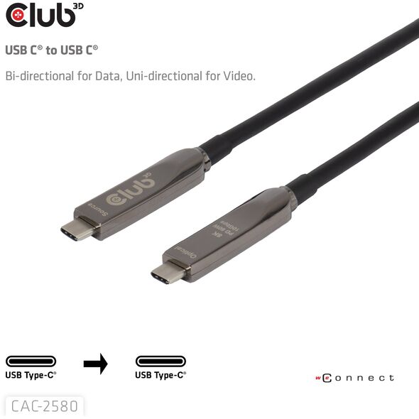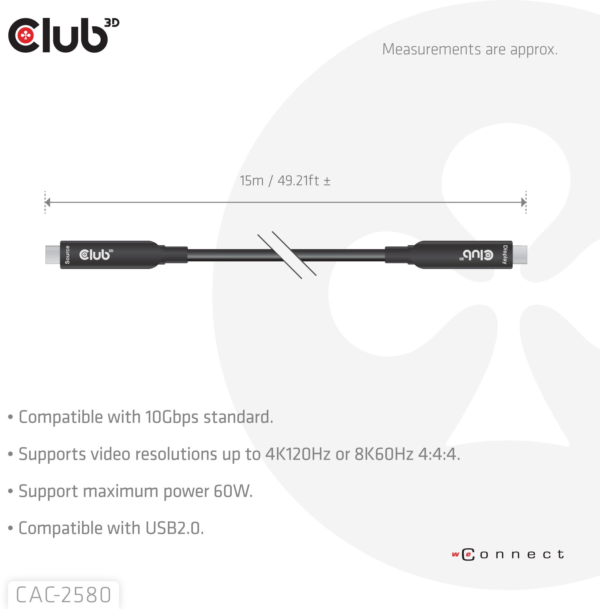 Club3D USB-C AOC-Kabel 8K/ 10Gbps/ 60W 15m St/St