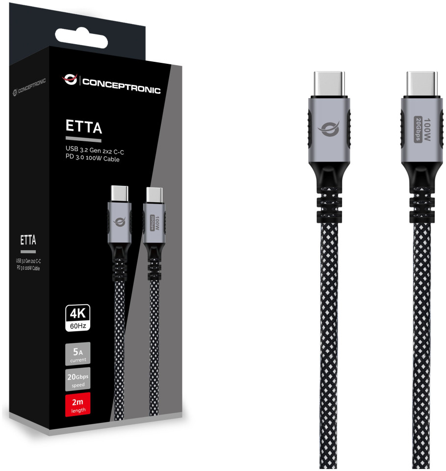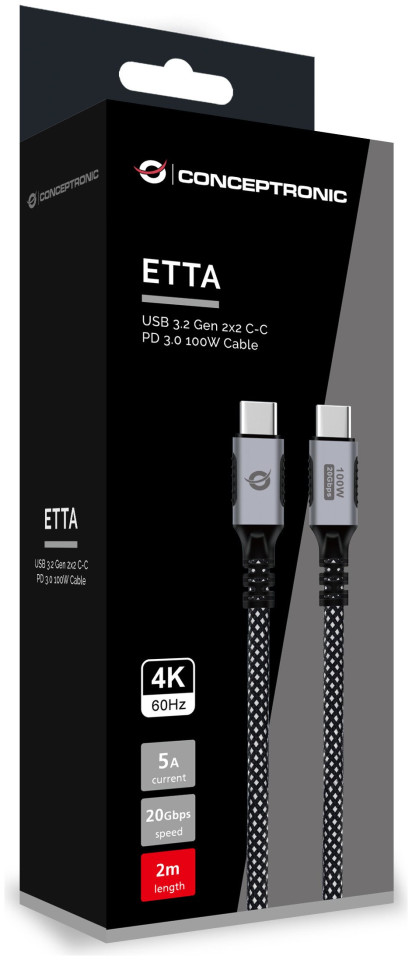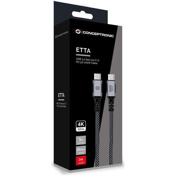 Καλώδιο Conceptronic ETTA07B20 USB USB 3.2 Gen 2x2 2 m USB C Μαύρο