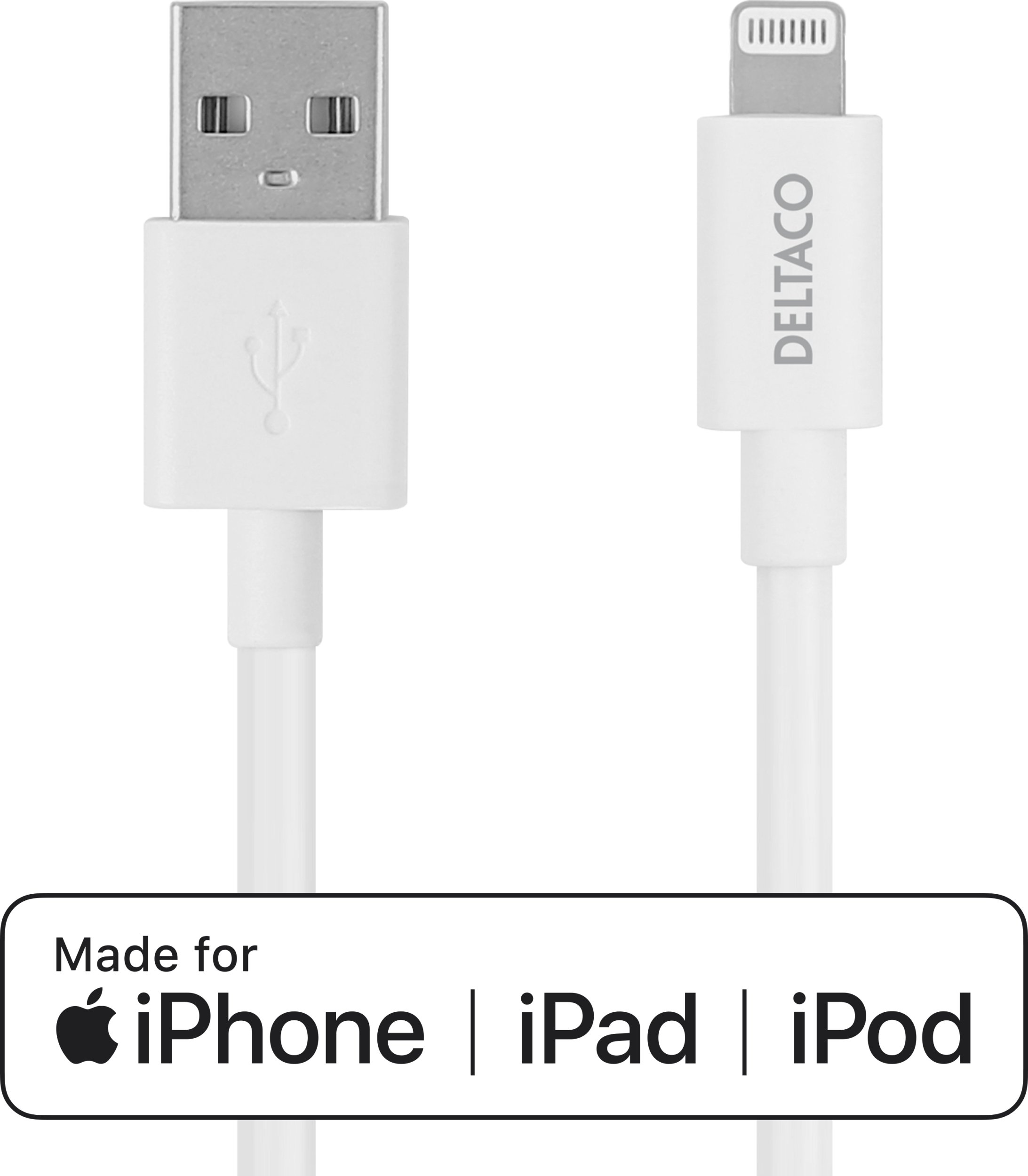 Deltaco IPLH-4005, 0.5 μ, Lightning, USB A, Αρσενικό, Λευκό, Ευθύ