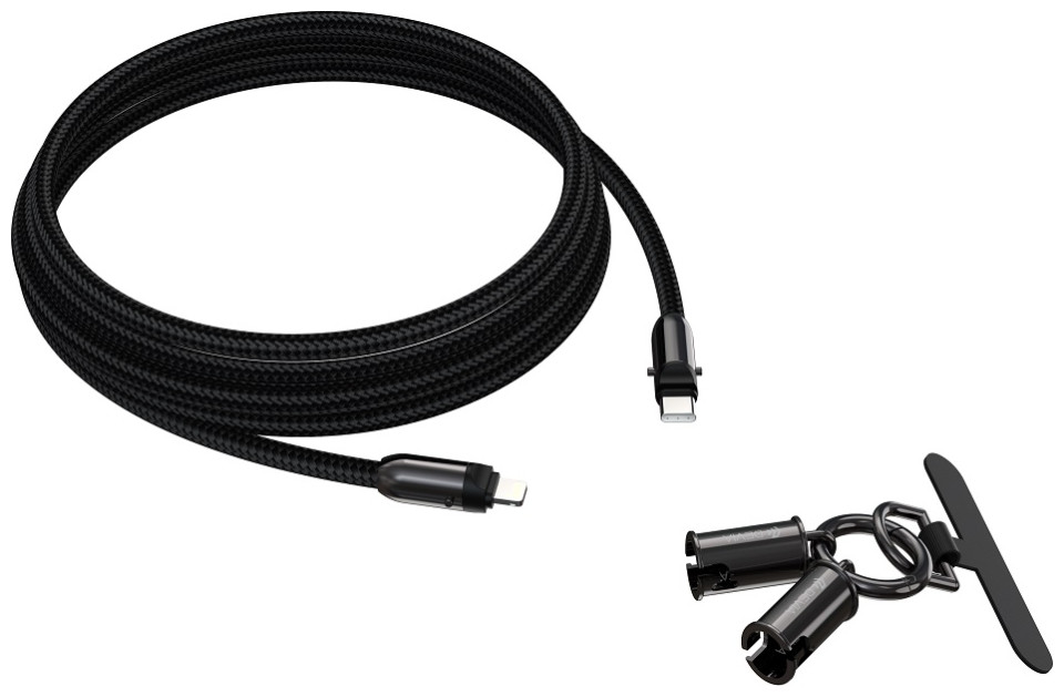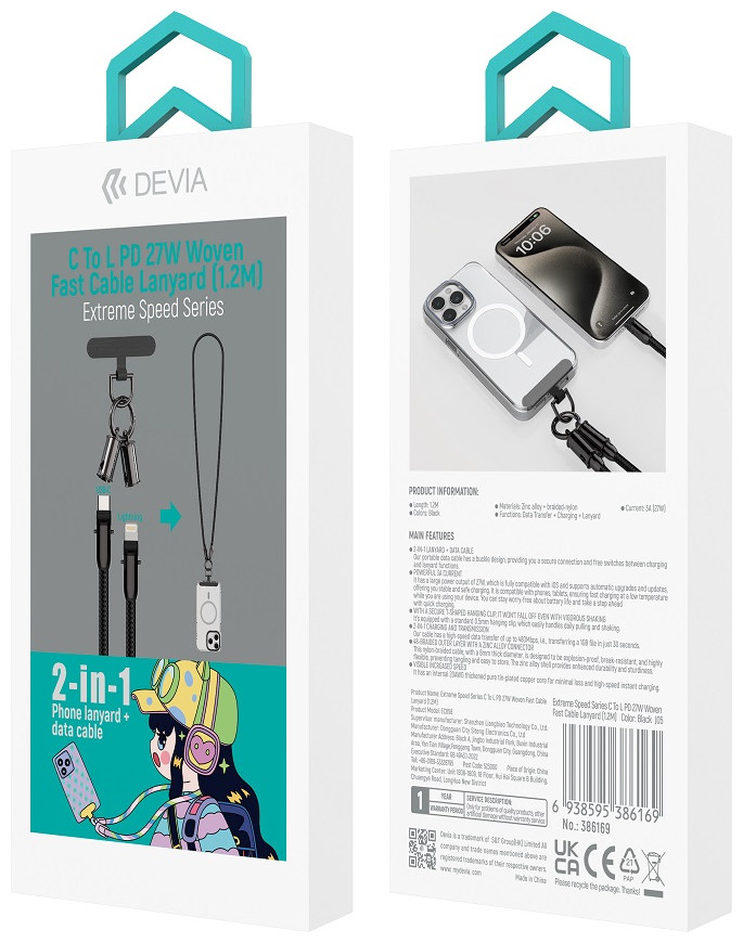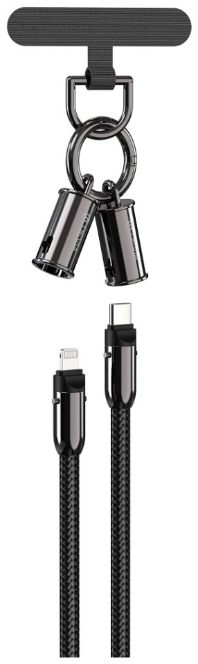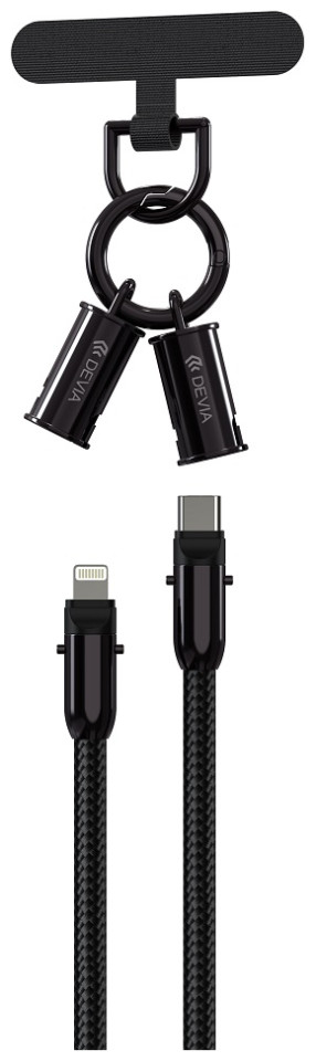 Would you like to have a charging or data transfer cable always by your side? This is possible thanks to the lanyard - the 2 in 1 cable from Devi! #13#10The cable features a snap-on connector, which transforms an ordinary cable into a lanyard with a carabiner. The snap construction is durable and there is no risk of the lanyard coming undone while wearing it. The set includes a phone attachment. #13#10The cable is covered with a weave of nylon fibers, which are very durable. Thanks to the coating, the cable doesn't tangle and doesn't break. Available in black and lavender.