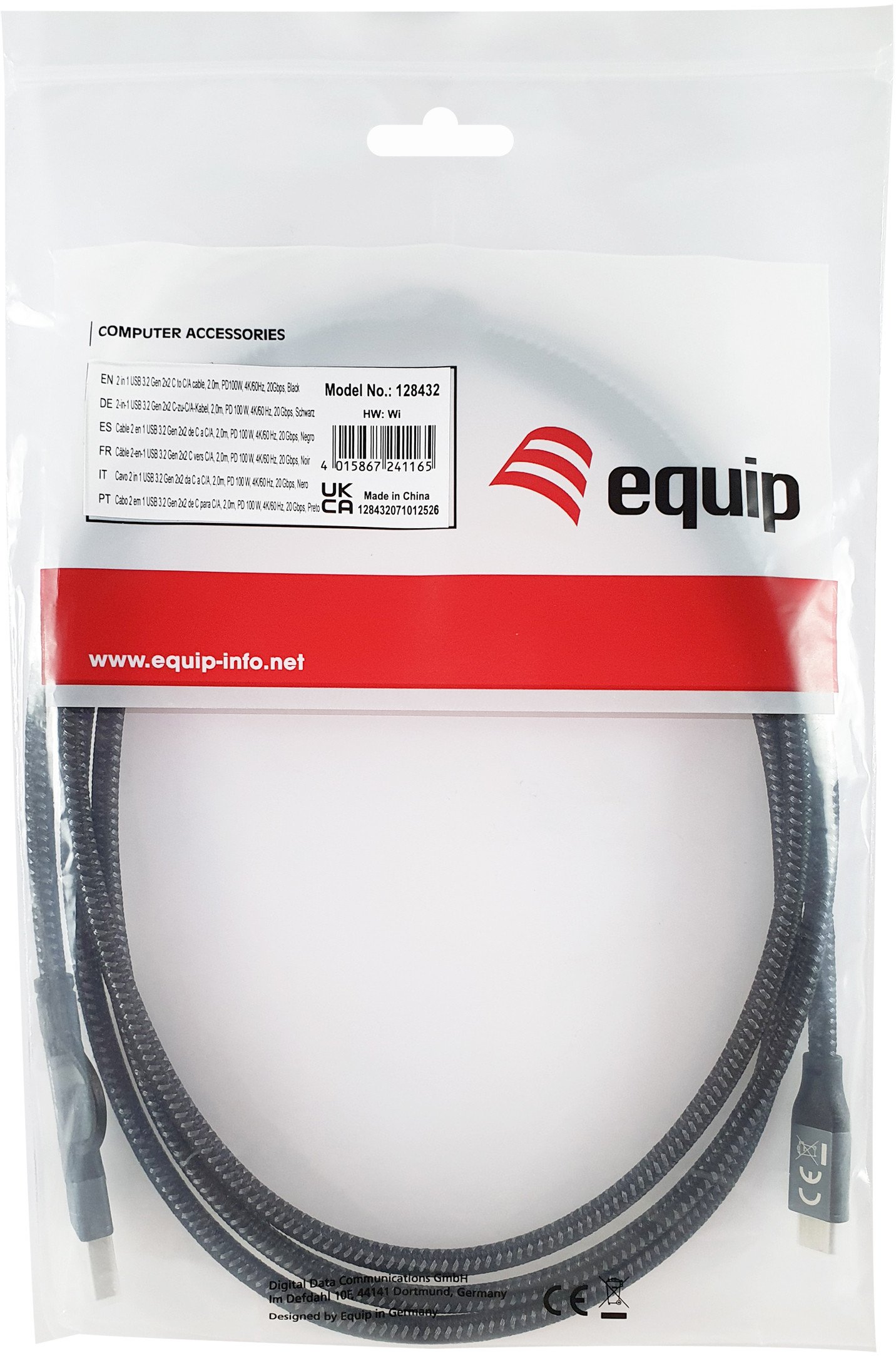 Καλώδιο Equip 128432 USB USB 3.2 Gen 2x2 2 m USB A/USB C USB C Μαύρο