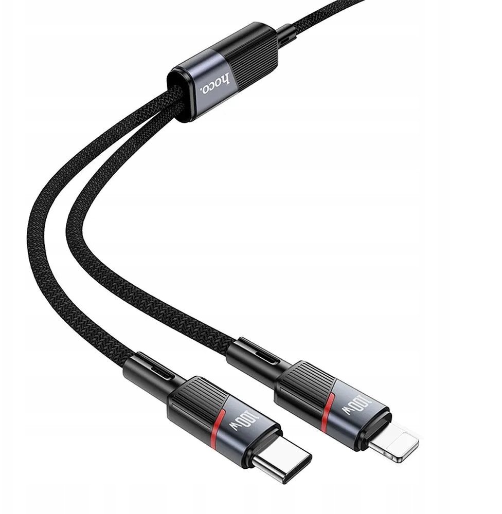 HOCO καλώδιο 2σε1 Τύπος C σε Τύπος C + Lightning 5A 100W U139 1,2 m μαύρο