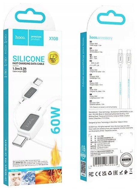 Καλώδιο HOCO Τύπου C σε Τύπου C 3A 60W X108 1 m λευκό