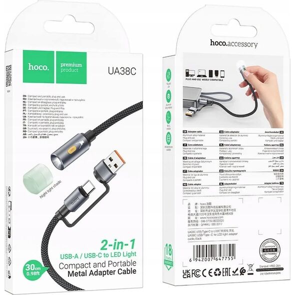 HOCO καλώδιο USB A / Τύπος C με LED light UA38C μαύρο