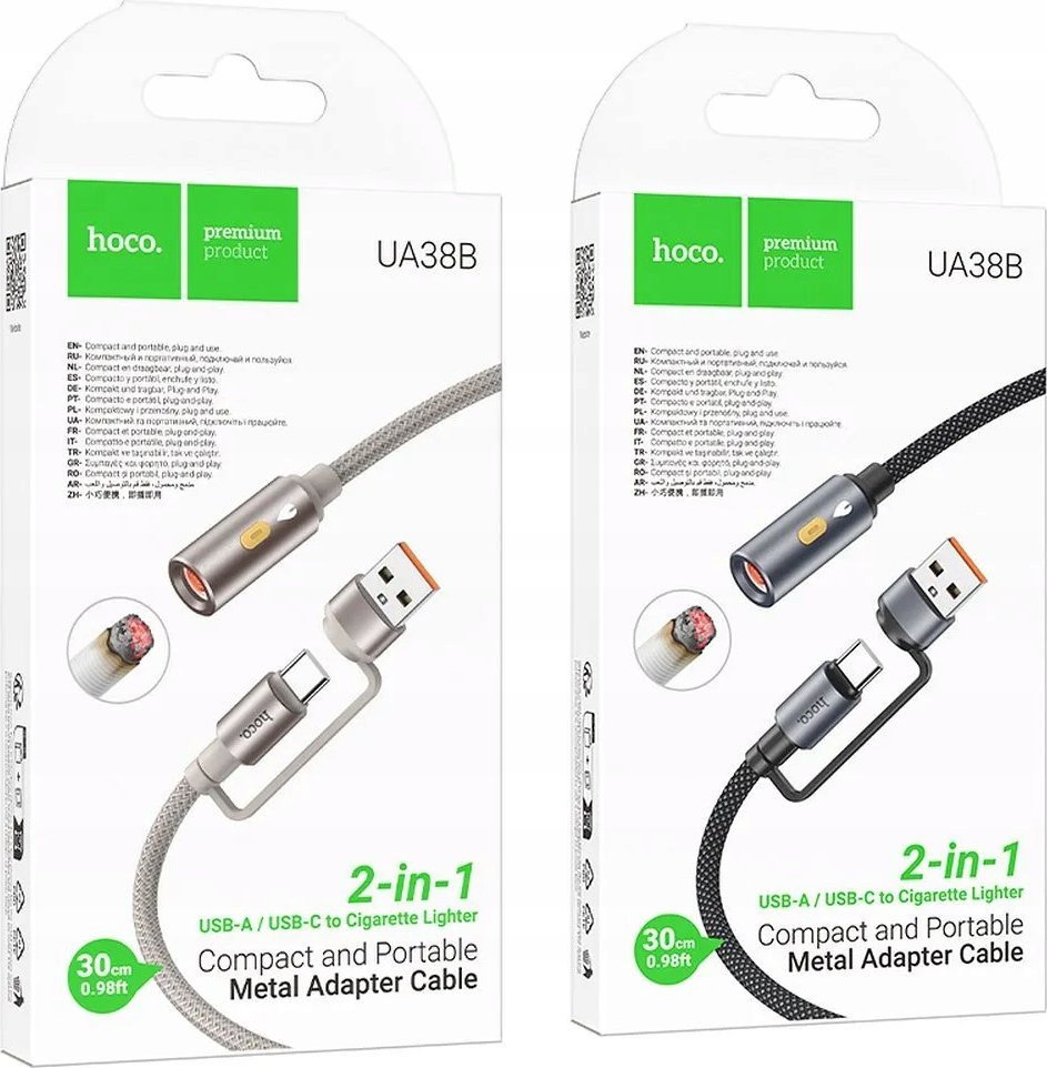 Καλώδιο HOCO USB A / Τύπου C για αναπτήρα αυτοκινήτου UA38B 0,3 m μαύρο