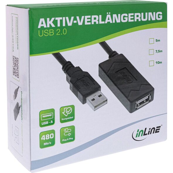 Ενεργό καλώδιο επέκτασης InLine® USB 2.0, USB-A αρσενικό/θηλυκό, 10μ