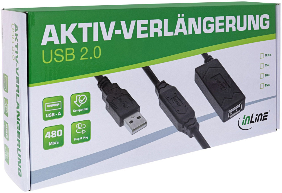 Ενεργό καλώδιο επέκτασης USB 2.0 InLine®, USB-A αρσενικό/θηλυκό, 15m