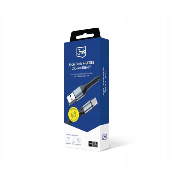 Kabel 3MK Hyper Cable N-SERIES USB-A do USB-C 1m 9V/2A 18W QC 3.0 czarny