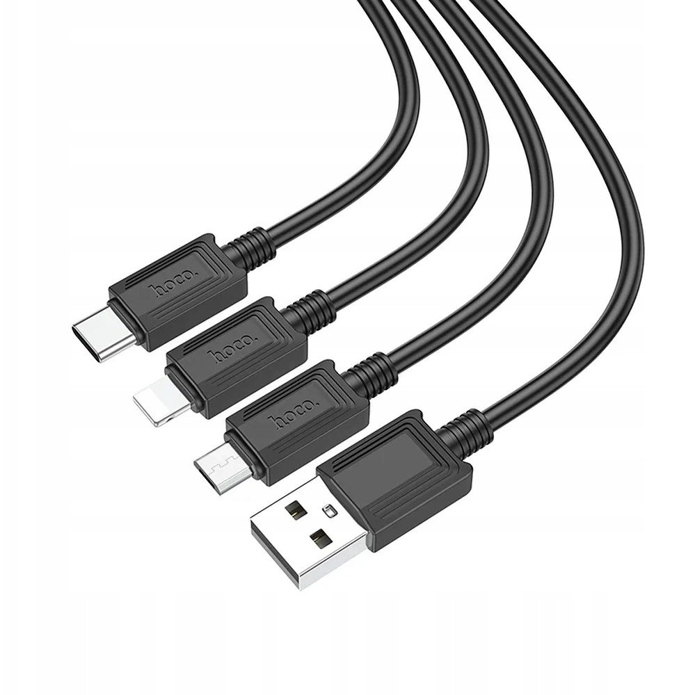 Καλώδιο 3 σε 1 USB A σε Lightning / Micro USB / USB C HOCO 2A X74 1 m μαύρο