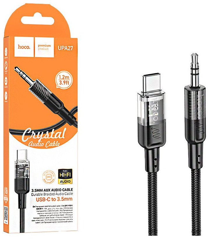 Καλώδιο AUX Jack 3,5 mm σε USB C Hoco 1,2 m UPA27 μαύρο
