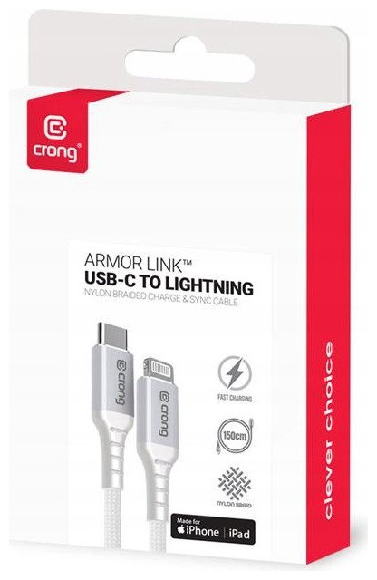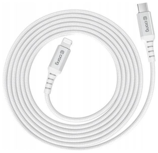 Καλώδιο Crong USB-C Lightning Armor Link Γρήγορη Φόρτιση MFi Oplot Λευκό 150cm