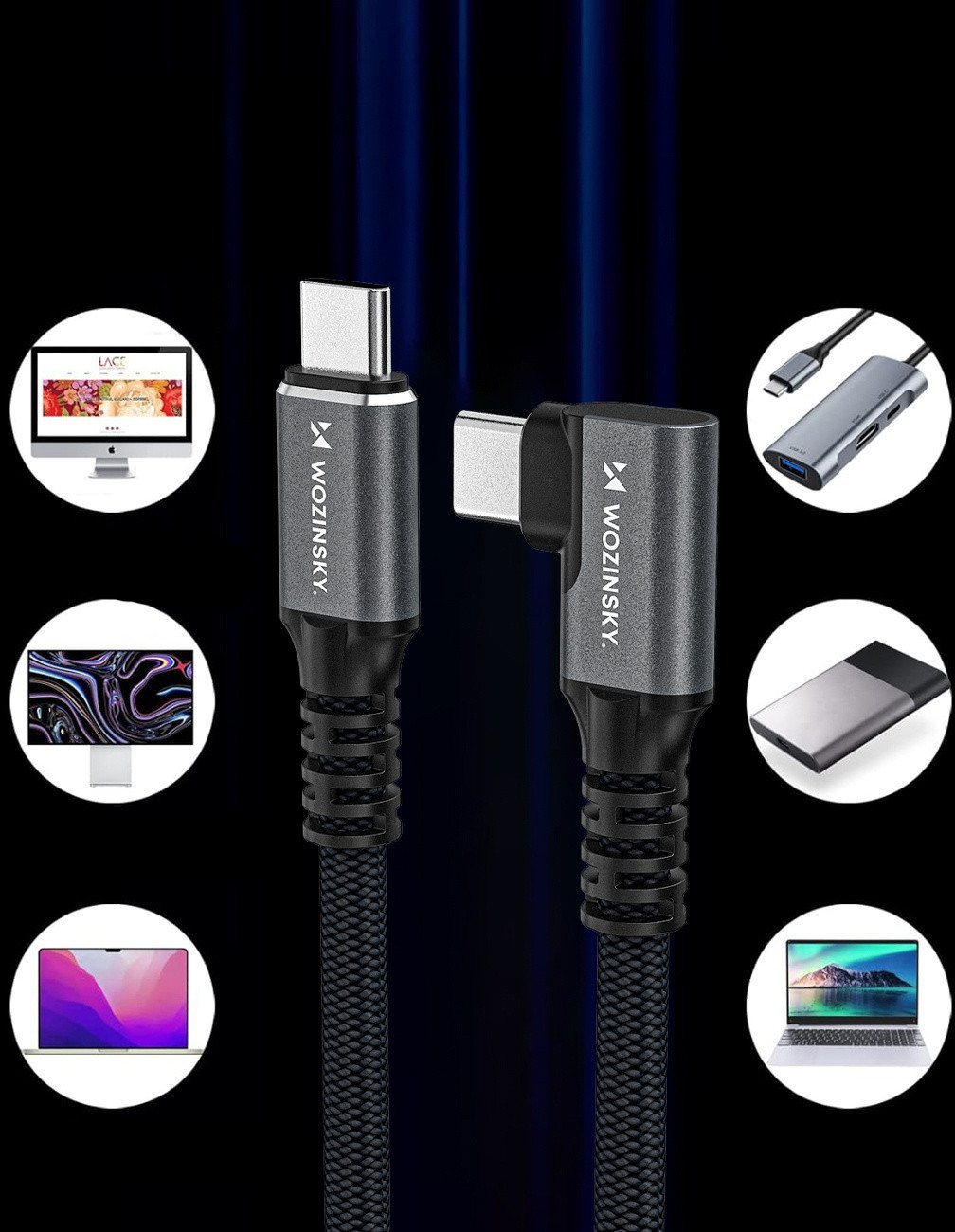 Γωνιακό καλώδιο Wozinsky WPS2-UY41S USB-C Thunderbolt 4 240W 2m - μαύρο
