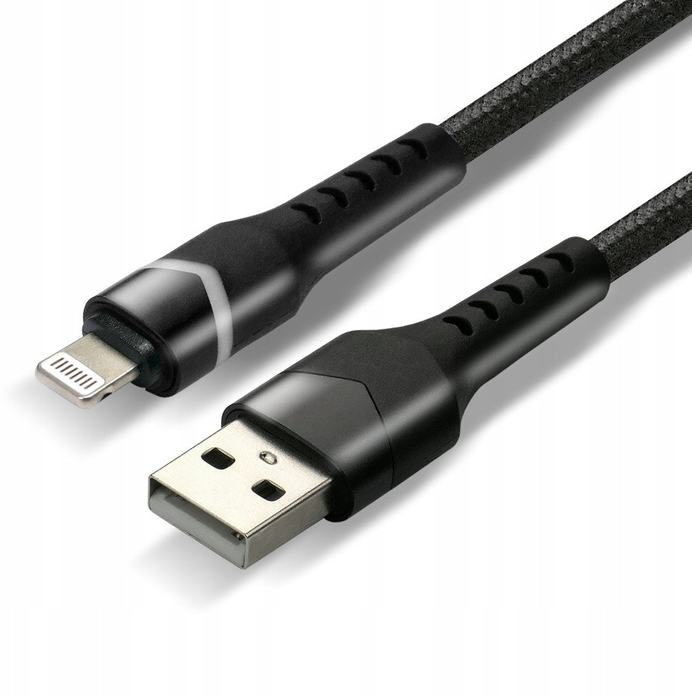 Πλεκτό καλώδιο USB -> Lighting 1m 2.4A RGB LED μαύρο