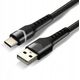 Πλεκτό καλώδιο USB -> USB-C 2m 3A RGB LED μαύρο