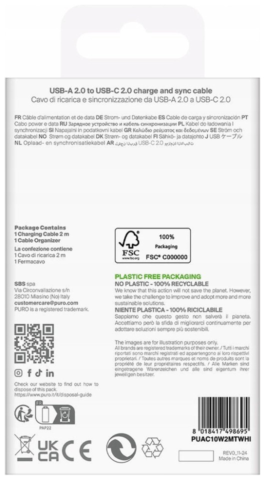 Καλώδιο Puro 10W TPE USB-A - USB-C 2m - λευκό