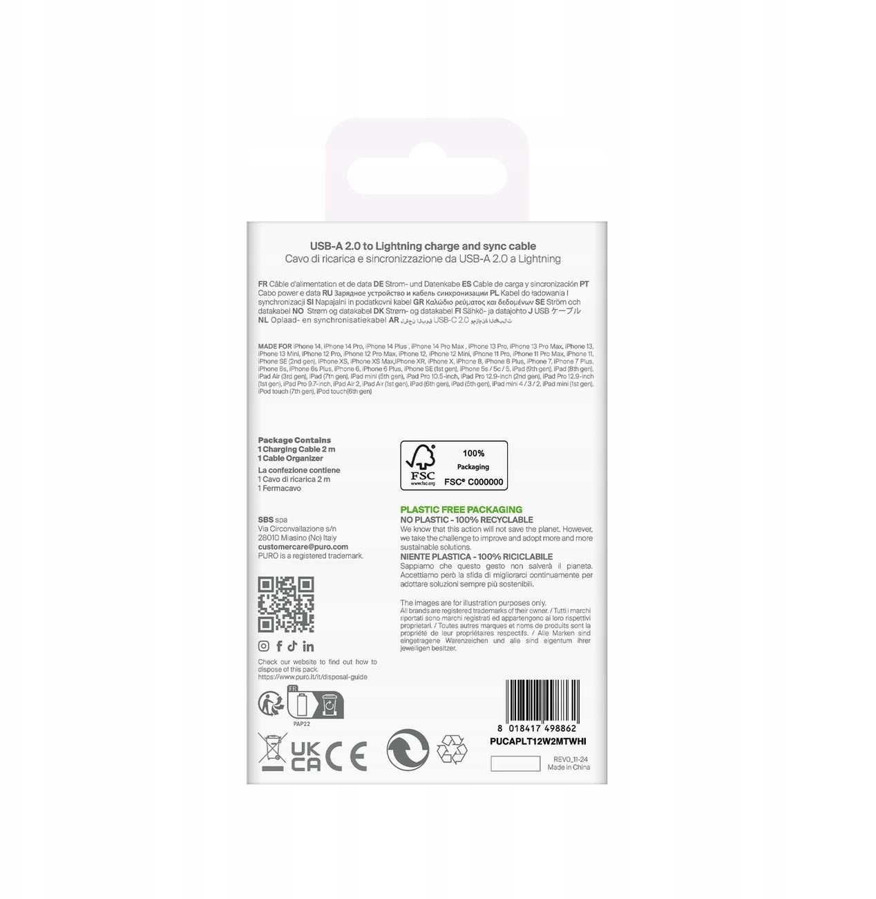 Καλώδιο Puro TPE 12W USB-A - Lightning 2m - λευκό