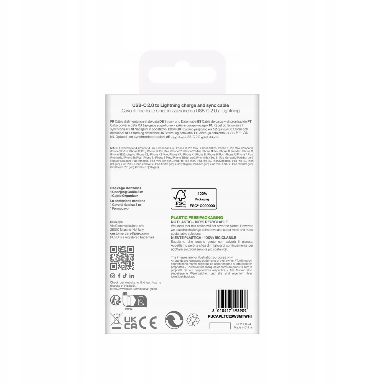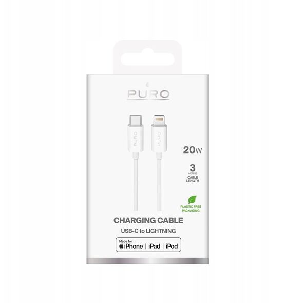 Καλώδιο Puro TPE 20W USB-C - Lightning 3m - λευκό