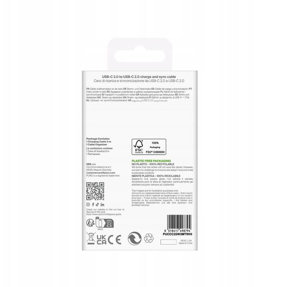 Καλώδιο Puro TPE 25W USB-C - USB-C 3m - λευκό