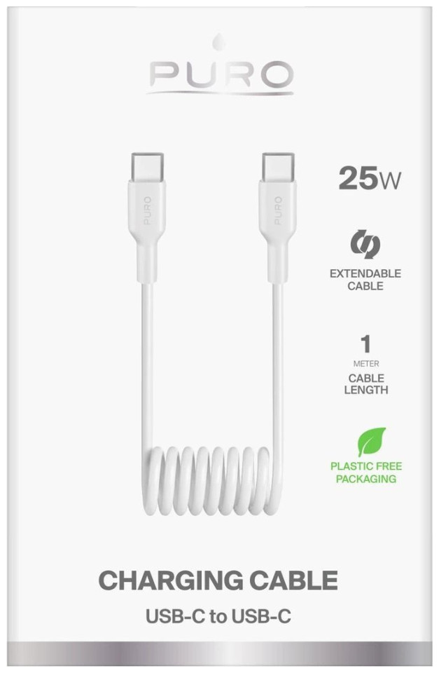 Σπιράλ καλώδιο Puro 25W USB-C - USB-C 1m - λευκό