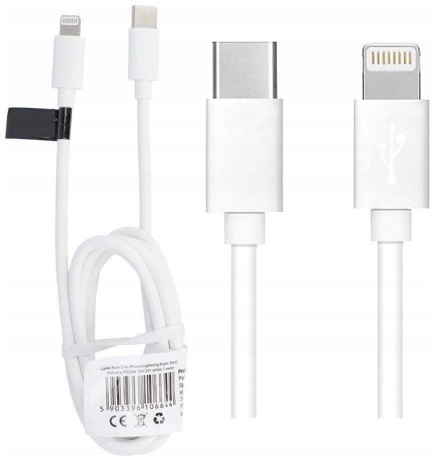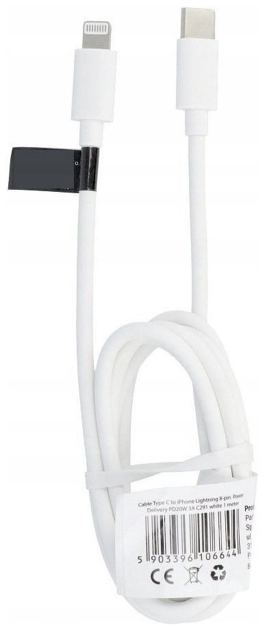 Καλώδιο Τύπου C σε Lightning PD 3A 20W C291 1 m λευκό