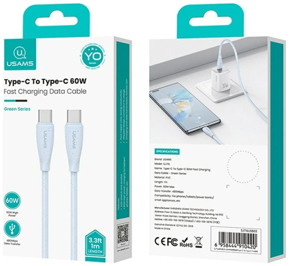 Kabel USAMS Green Series SJ716 60W USB-C do USB-C 1m