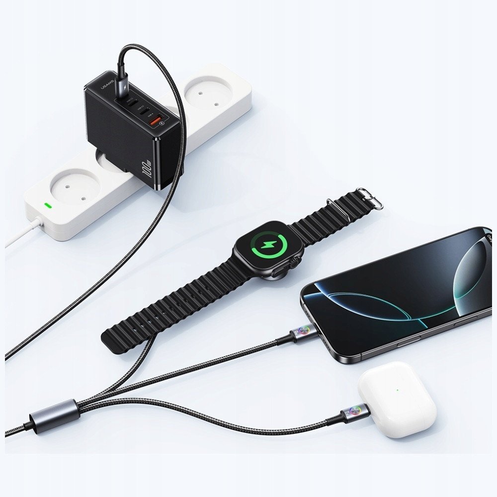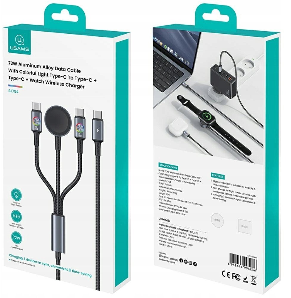 Καλώδιο USAMS Huan Series SJ754 72W USB-C σε USB-C + USB-C + ασύρματος φορτιστής για ρολόι tarnish