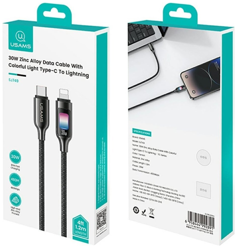 Καλώδιο USAMS TC Series SJ749 30W USB-C σε Lightning 1,2 m tarnish