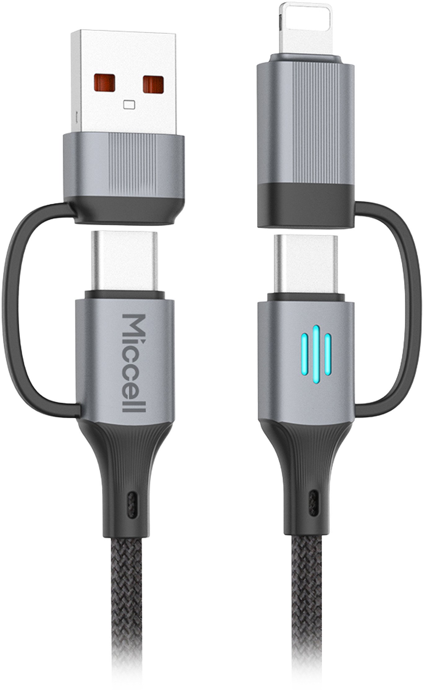 Kabel USB-A/C - USB-C/Lightning Miccell VQ-D145, 240W, 1m, czarny