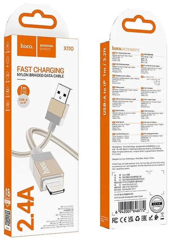 Καλώδιο USB A σε Lightning HOCO 2,4A 1 m X110 χρυσό