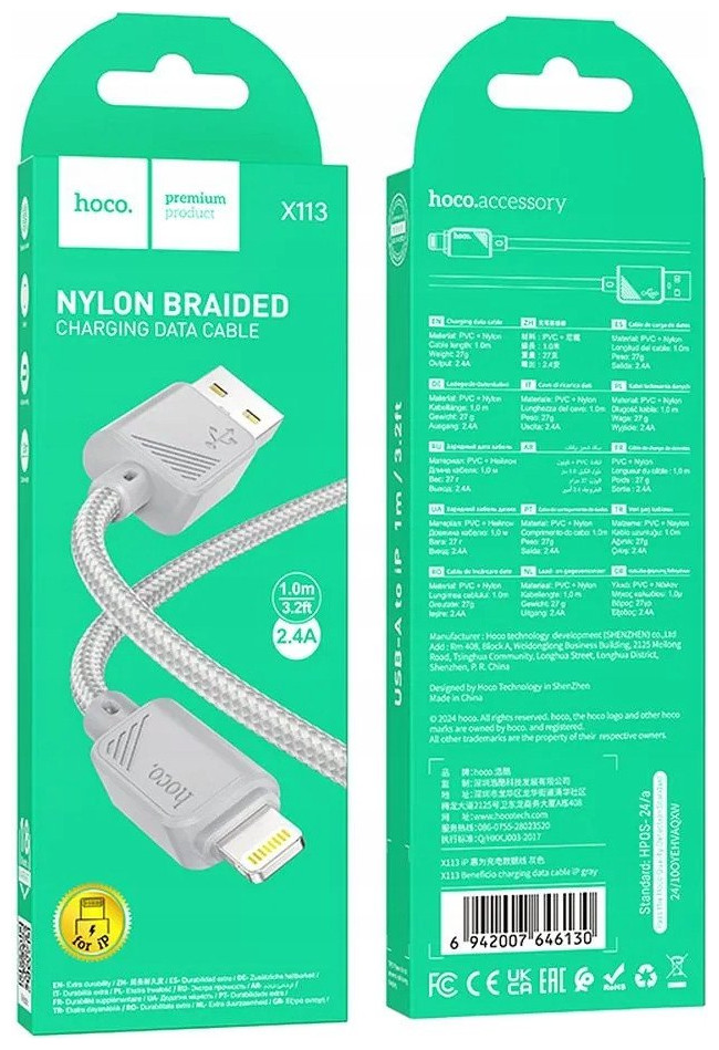 Καλώδιο USB A σε Lightning HOCO 2,4A 1 m X113 γκρι