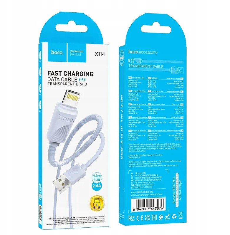 Καλώδιο USB A σε Lightning HOCO 2,4A 1 m X114 μπλε