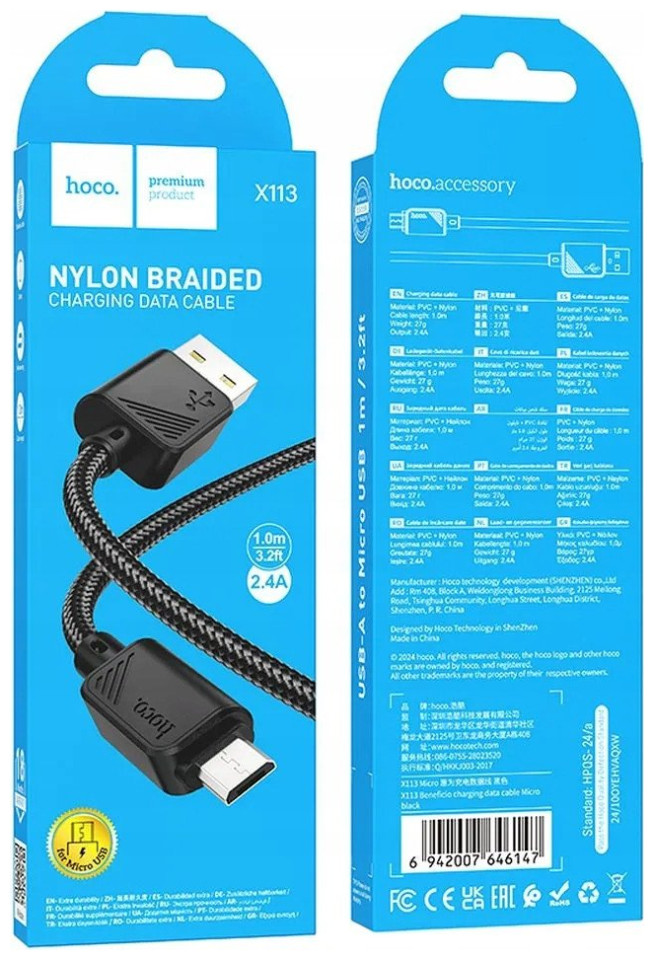 Καλώδιο USB A σε Micro USB HOCO 2,4A 1 m X113 μαύρο