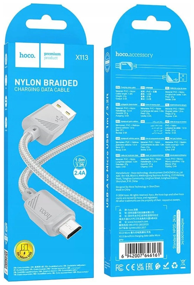 Καλώδιο USB A σε Micro USB HOCO 2,4A 1 m X113 γκρι