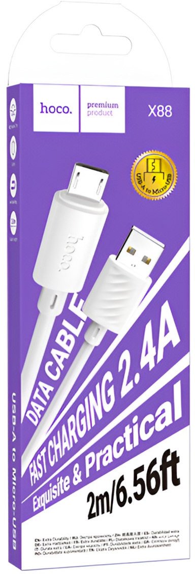 Kabel USB A do Micro USB Hoco 2,4A 2 m X88 biały