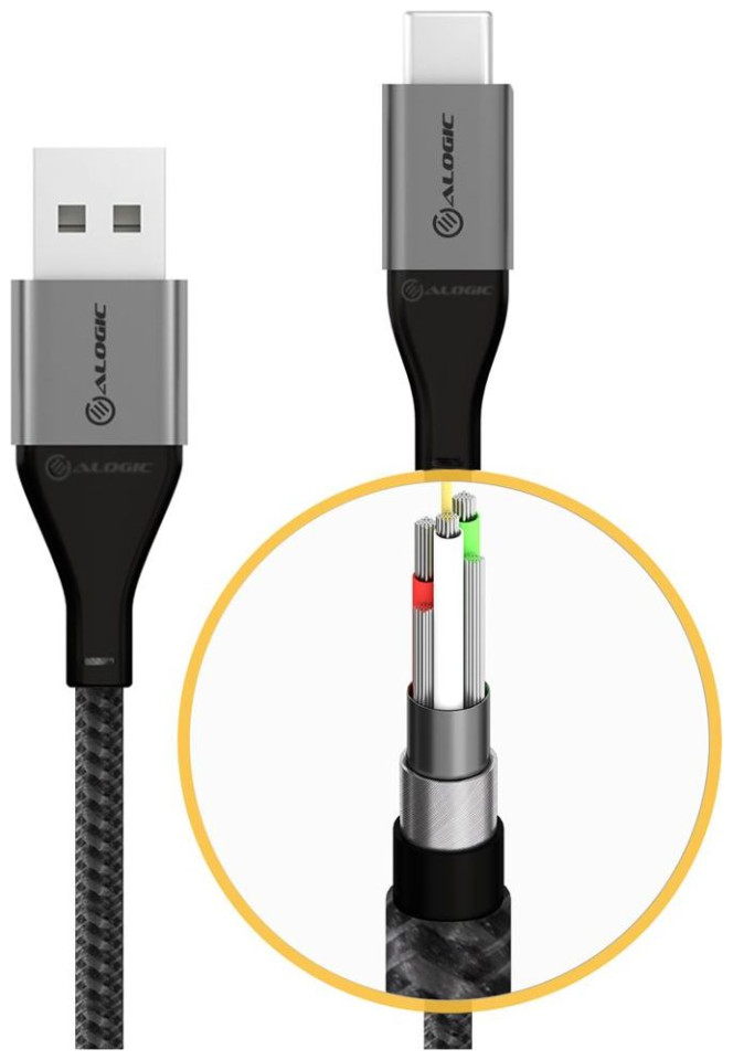 Καλώδιο USB Alogic USB-A - USB-C 0.3 m Γκρι (ULCA2030-SGR)