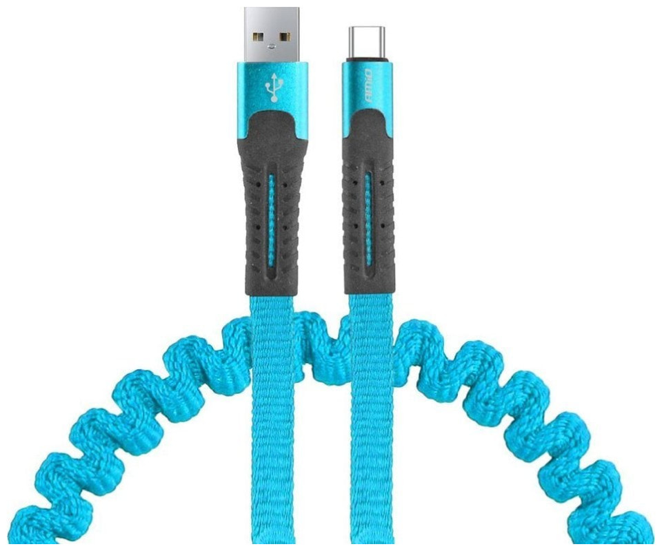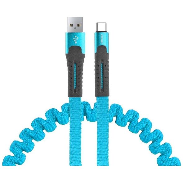 Kabel sprężynujący USB Symbol: 5903293025314 Kolor: turkusowy Długość kabla: 1.20 m Typ złącza: USB-C