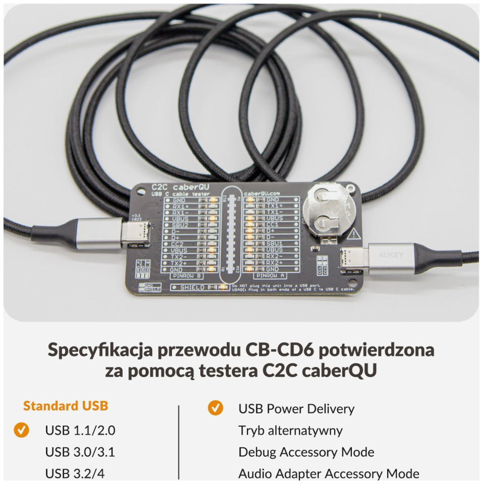AUKEY CB-CD6 νάιλον εξαιρετικά γρήγορη γρήγορη φόρτιση USB C - καλώδιο USB C 2m