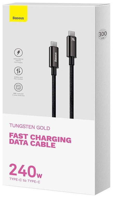 Baseus Tungsten Gold 240W καλώδιο USB-C 3m (μαύρο) 6932172628840 048624 Baseus Tungsten Gold 240W καλώδιο USB-C 3m (μαύρο) Απολαύστε τη γρήγορη φόρτιση των συσκευών σας και μεταφέρετε αρχεία άμεσα. Το καλώδιο Baseus Tungsten Gold παρέχει ισχύ έως και 240 W και η ταχύτητα μετάδοσης του φτάνει τα 480 Mbps. Το προϊόν είναι εξαιρετικά ανθεκτικό και ανθεκτικό στη φθορά. Διακρίνεται επίσης από ευρεία συμβατότητα - μπορεί εύκολα να φορτίσει τις περισσότερες συσκευές εξοπλισμένες με θύρα USB-C. Γρήγορη φόρτιση Ξεχάστε τις μεγάλες αναμονές έως ότου οι συσκευές σας είναι έτοιμες για χρήση. Το καλώδιο Baseus παρέχει ισχύ έως 240 W και υποστηρίζει το πιο πρόσφατο πρωτόκολλο γρήγορης φόρτισης PD3.1. Χάρη σε αυτό, η φόρτιση του smartphone σας θα διαρκέσει μόνο μια στιγμή! Για λόγους ασφαλείας, το καλώδιο Baseus Tungsten Gold σάς επιτρέπει να φορτίζετε επιλεγμένες συσκευές όχι μόνο γρήγορα, αλλά και με ασφάλεια. Μόλις αποκαταστήσει το μεγαλύτερο μέρος της ενέργειας στον εξοπλισμό που είναι συνδεδεμένος σε αυτό, θα μεταβεί αυτόματα σε στάγδην φόρτιση. Αυτό θα προστατέψει την μπαταρία από ζημιές και θα παρατείνει τη διάρκεια ζωής της! Επιπλέον, διαθέτει ενσωματωμένο τσιπ που αναγνωρίζει έξυπνα τις συνδεδεμένες συσκευές και προσαρμόζει τις παραμέτρους φόρτισης σε αυτές. Αστραπιαία μεταφορά αρχείων Με το Baseus, μπορείτε επίσης να απολαύσετε γρήγορες μεταφορές αρχείων. Το καλώδιο Tungsten Gold προσφέρει ταχύτητα μετάδοσης έως και 480 Mbps. Χάρη σε αυτό, σας επιτρέπει να αντιγράψετε επιλεγμένες φωτογραφίες, έγγραφα ή βίντεο εν ριπή οφθαλμού. Όχι άλλη ατελείωτη αναμονή - μεταφέρετε αρχεία άμεσα και εξοικονομήστε χρόνο! Βελτιωμένος σχεδιασμός Οι σύνδεσμοι καλωδίων είναι ανθεκτικοί στη φθορά και τη διάβρωση και οι ανθεκτικοί αγωγοί από επικασσιτερωμένο χαλκό εξασφαλίζουν σταθερή και αξιόπιστη μετάδοση σήματος. Το προϊόν είναι επίσης εξοπλισμένο με νάιλον πλεξούδα, που το προστατεύει από ζημιές και εξασφαλίζει μεγαλύτερη αντοχή. Δεν φοβάται να λυγίσει ή να τραβήξει! Επιπλέον, οι πιο ευαίσθητες περιοχές του καλωδίου διαθέτουν πρόσθετη προστασία από υψηλής ποιότητας υλικό TPE. Κατασκευαστής Baseus Όνομα Καλώδιο δεδομένων γρήγορης φόρτισης Tungsten Gold Μοντέλο CAWJ040201 Έγχρωμο Μαύρο Τύπος USB-C σε USB-C Ισχύς 240 W max Ταχύτητα μετάδοσης Έως 480 Mbps Υλικό Κράμα ψευδαργύρου + πλέξη νάιλον Μήκος 3 m.{Plugin Type} Απλή προσθήκη . {Plugin Type} Απλή προσθήκη . {Plugin Type} Απλή προσθήκη . {Plugin Type} Απλή προσθήκη . {Plugin Type} Απλή προσθήκη . {Plugin Type} Απλή προσθήκη . {Plugin Type} Απλή προσθήκη . {Plugin Type} Απλή προσθήκη . {Plugin Type} Απλή προσθήκη . {Μήκος καλωδίου} 3 m. {Μήκος καλωδίου} 3 m. {Μήκος καλωδίου} 3 m. {Μήκος καλωδίου} 3 m. {Μήκος καλωδίου} 3 m. {Μήκος καλωδίου} 3 m. {Μήκος καλωδίου} 3 m. {Μήκος καλωδίου} 3 m. {Μήκος καλωδίου} 3 m. {Χρώμα} Μαύρο. {Χρώμα} Μαύρο. {Χρώμα} Μαύρο. {Χρώμα} Μαύρο. {Χρώμα} Μαύρο. {Χρώμα} Μαύρο. {Χρώμα} Μαύρο. {Χρώμα} Μαύρο. {Χρώμα} Μαύρο. {Χρώμα} Μαύρο. {Χρώμα} Μαύρο. {Χρώμα} Μαύρο. {Χρώμα} Μαύρο. {Χρώμα} Μαύρο. {Χρώμα} Μαύρο. {Χρώμα} Μαύρο. {Χρώμα} Μαύρο. {Χρώμα} Μαύρο. {Standard} 3.1. {Standard} 3.1. {Standard} 3.1. {Standard} 3.1. {Standard} 3.1. {Standard} 3.1. {Standard} 3.1. {Standard} 3.1. {Standard} 3.1. {Τύπος καλωδίου} Αρσενικό - Αρσενικό . {