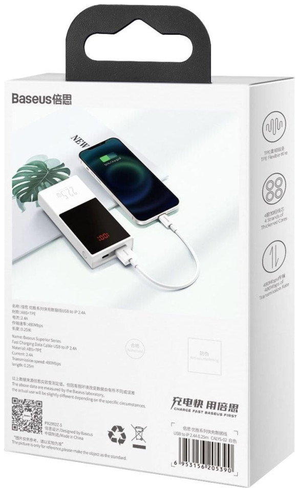 Το προϊόν υποστηρίζει γρήγορη φόρτιση 2.4 A Αυτό σημαίνει ότι μπορεί να φορτίσει γρήγορα το iPhone σας, εξοικονομώντας χρόνο! Δεν χρειάζεται πλέον να περιμένετε για πάντα έως ότου το smartphone σας είναι έτοιμο να λειτουργήσει ξανά - με το Baseus, χρειάζονται μόνο λίγα λεπτά. Αυτό το πρακτικό καλώδιο όχι μόνο επιτρέπει τη γρήγορη φόρτιση - σας επιτρέπει επίσης να μεταφέρετε αρχεία σε σύντομο χρονικό διάστημα. Η ταχύτητα μετάδοσης έως και 480 MB/s σίγουρα θα ανταποκριθεί στις προσδοκίες σας. Μπορείτε να αντιγράψετε μια ταινία 1 GB σε μόλις 24 δευτερόλεπτα! Με το καλώδιο, μπορείτε να φορτίζετε το τηλέφωνό σας και να μεταφέρετε δεδομένα ταυτόχρονα.