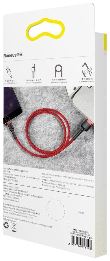 Το μήκος του καλωδίου Baseus είναι 50 cm και το μέγιστο ρεύμα εξόδου είναι 2,4 A. Το καλώδιο εξασφαλίζει άνεση στη χρήση και υψηλή λειτουργικότητα. Είναι κατασκευασμένο από υλικά υψηλής ποιότητας που εξασφαλίζουν μεγάλη διάρκεια ζωής του προϊόντος. Είναι κατασκευασμένο από νάιλον υλικό, για να μην μπλέκεται. Το καλώδιο σάς επιτρέπει να φορτίζετε και να μεταφέρετε αρχεία μεταξύ συσκευών που διαθέτουν είσοδο USB και συσκευών Apple με είσοδο Lightning.