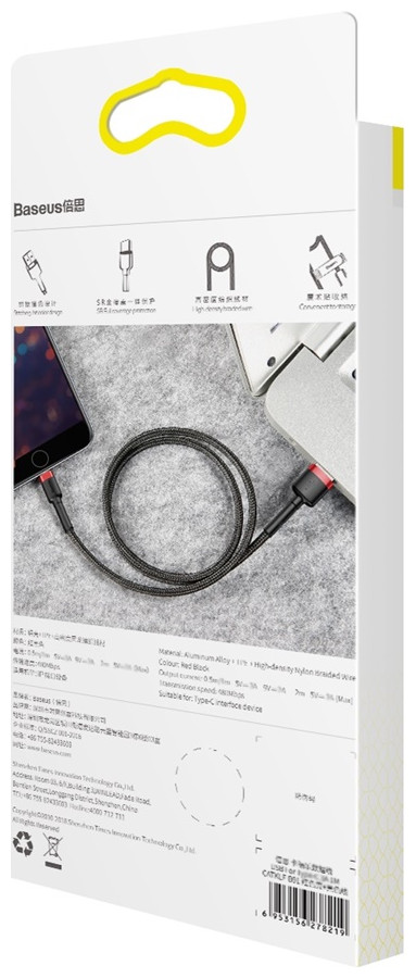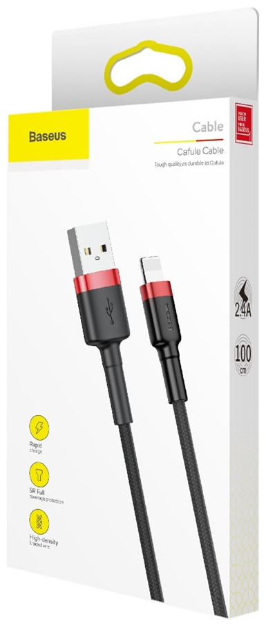 Το μήκος του καλωδίου Baseus είναι 100 cm και το μέγιστο ρεύμα εξόδου είναι 2,4 A. Το καλώδιο εξασφαλίζει άνεση στη χρήση και υψηλή λειτουργικότητα. Είναι κατασκευασμένο από υλικά υψηλής ποιότητας που εξασφαλίζουν μεγάλη διάρκεια ζωής του προϊόντος. Είναι κατασκευασμένο από νάιλον υλικό, ώστε να μην μπλέκεται. Το καλώδιο σάς επιτρέπει να φορτίζετε και να μεταφέρετε αρχεία μεταξύ συσκευών USB και συσκευών Apple χρησιμοποιώντας την είσοδο Lightning.
