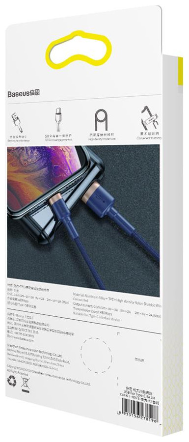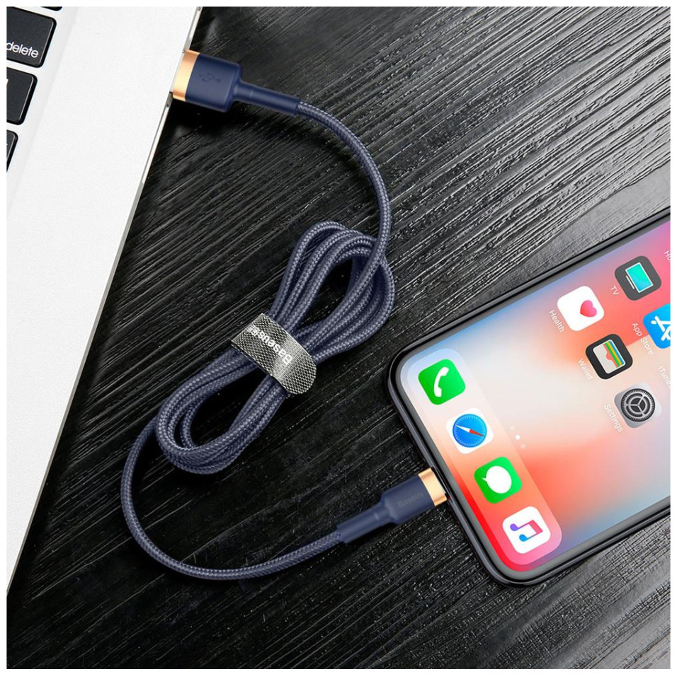 Το Baseus Cafole είναι ένα καλώδιο USB - Lightning υψηλής ποιότητας, σχεδιασμένο για μετάδοση δεδομένων και φόρτιση συσκευών. Χάρη στην ενισχυμένη δομή του, έχει αυξημένη αντοχή στο σπάσιμο (πρόσθετη προστασία στο καλώδιο στο βύσμα και πιο πυκνή πλέξη, διαθέσιμη μόνο στην έκδοση Cafule). Επιπλέον, χρησιμοποιήθηκαν υλικά για την ενίσχυση της δομής των βυσμάτων (συμπεριλαμβανομένου του αλουμινίου).