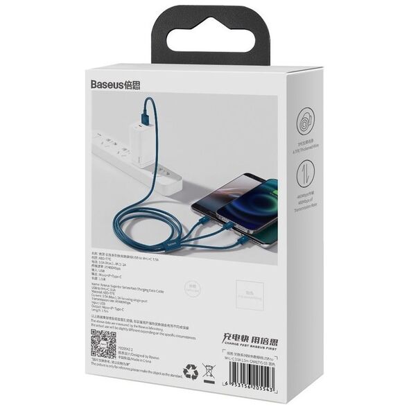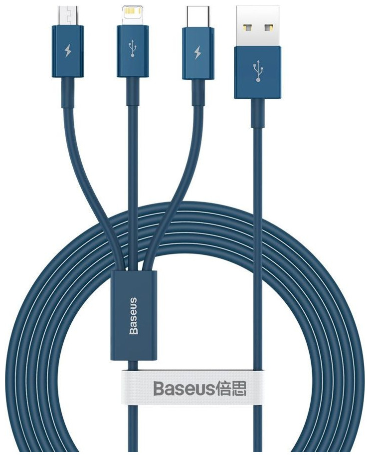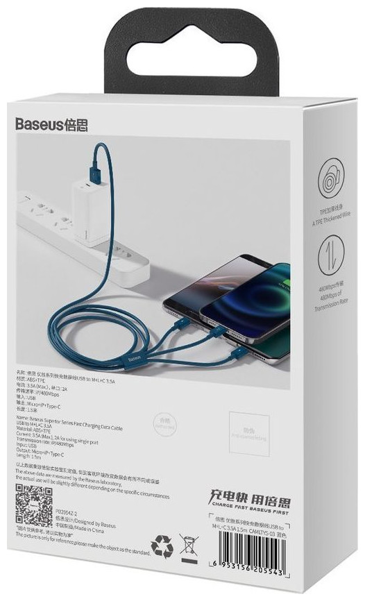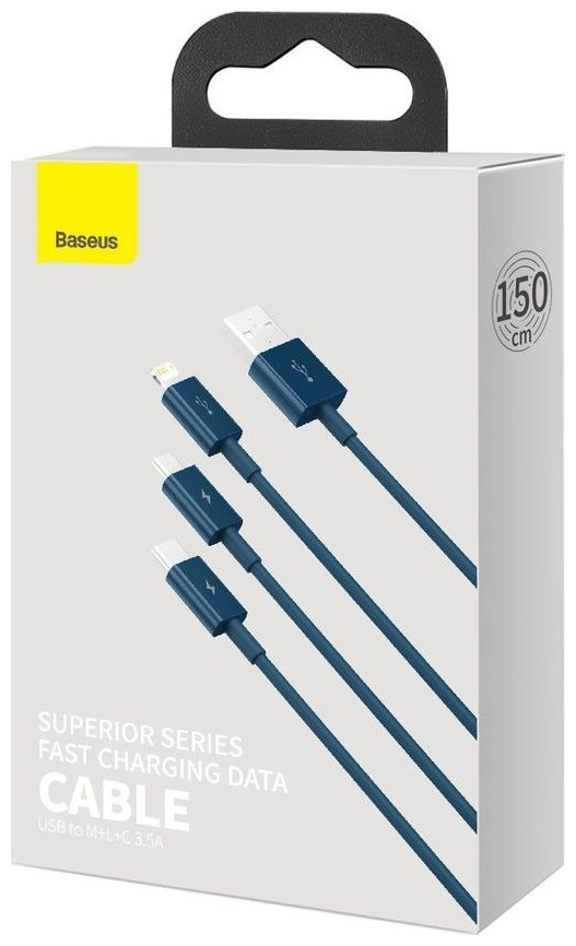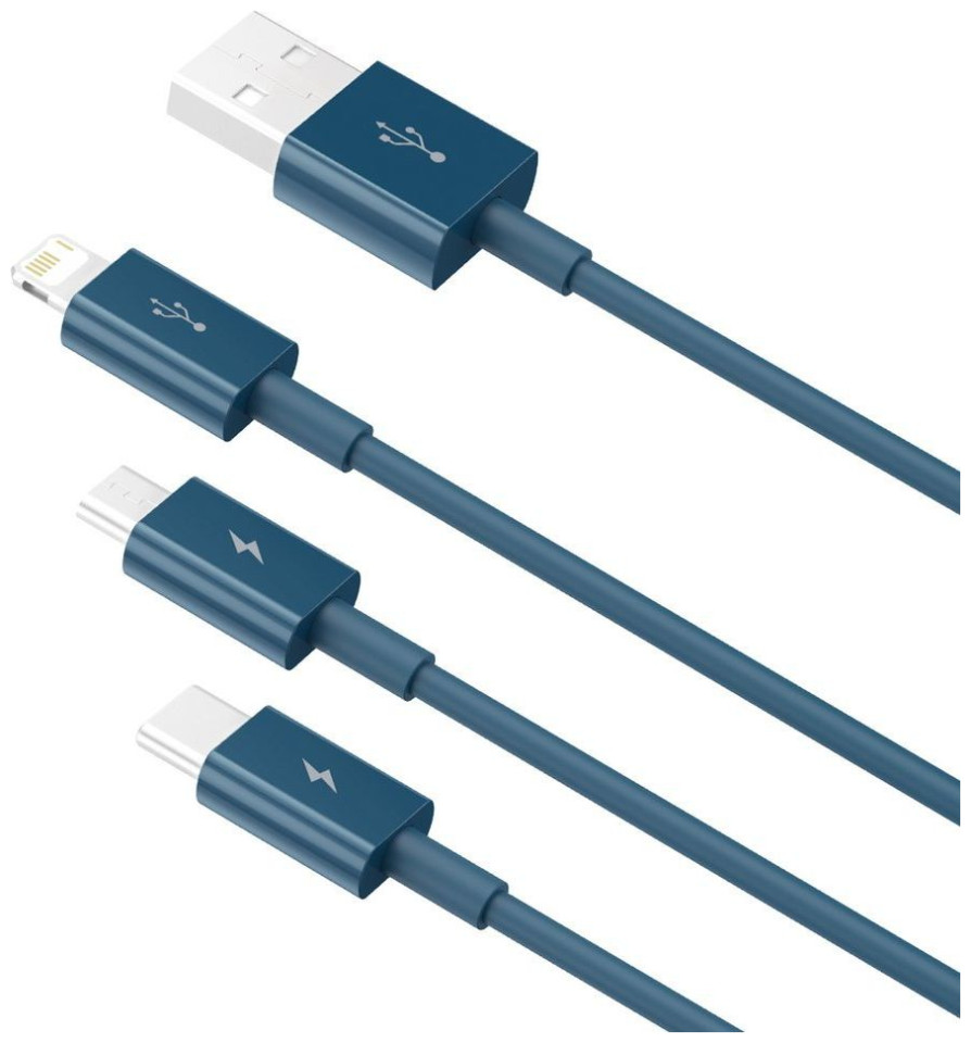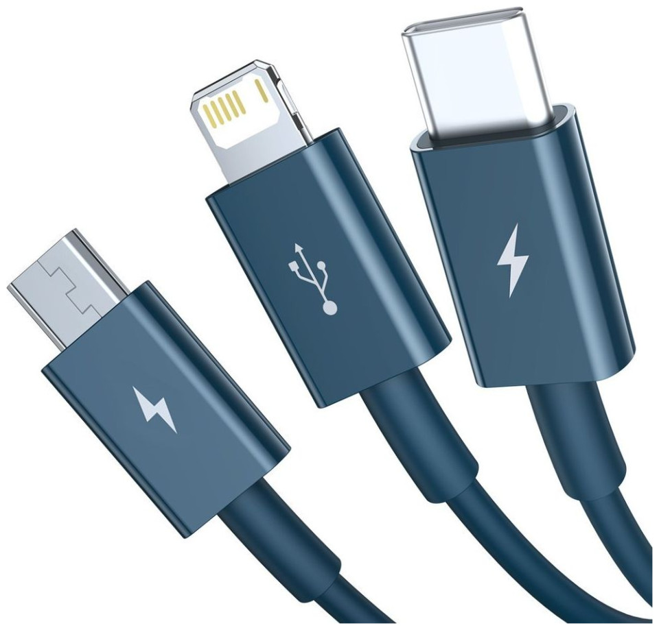 Το καλώδιο Baseus CALMTYS-03 σάς επιτρέπει να φορτίζετε γρήγορα το τηλέφωνό σας. Σας επιτρέπει επίσης να μεταφέρετε αρχεία με ταχύτητες έως και 480 MB/s. Ανθεκτικό και ανθεκτικό στη φθορά - θα σας εξυπηρετήσει τέλεια για μεγάλο χρονικό διάστημα. Το σετ περιλαμβάνει επίσης έναν πρακτικό ιμάντα που θα διευκολύνει την αποθήκευση του καλωδίου και θα αποτρέψει το μπέρδεμα του. Έως και 3 υποδοχές - micro USB, USB-C και lightning, διασφαλίζουν ευρεία συμβατότητα προϊόντος και επιτρέπουν τη φόρτιση πολλών συσκευών ταυτόχρονα.