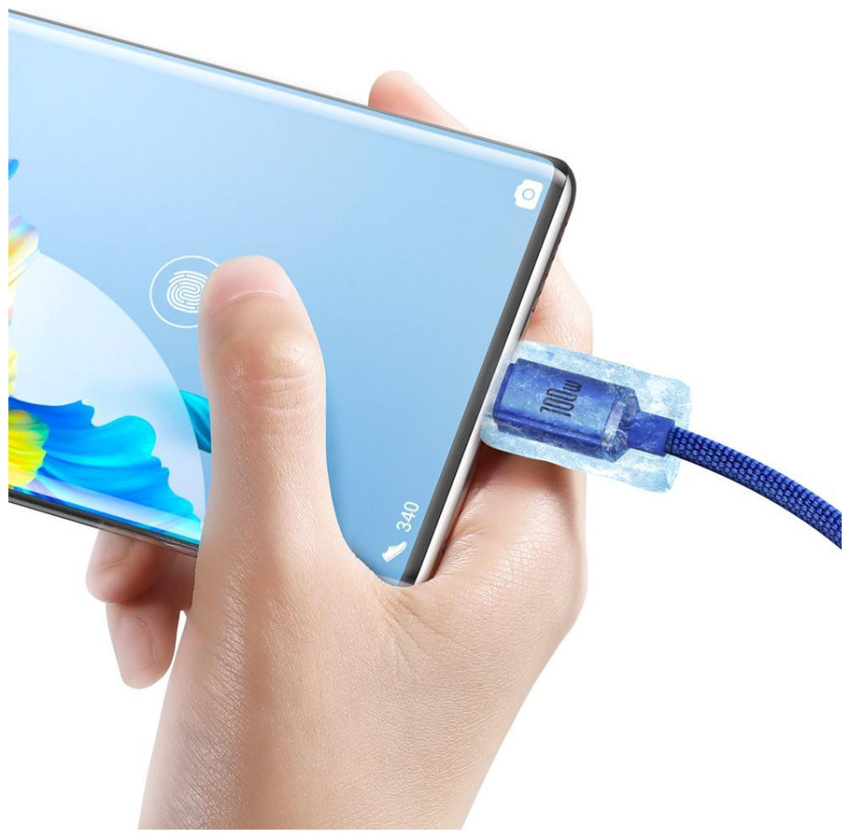 Καλώδιο γρήγορης φόρτισης και μεταφοράς δεδομένων της σειράς Crystal Shine της Baseus Παρουσιάζουμε το καλώδιο γρήγορης φόρτισης και μεταφοράς δεδομένων Baseus CAJY000503. Χάρη στην καθολική έξοδο USB-C, μπορείτε εύκολα να φορτίσετε το τηλέφωνο ή το φορητό υπολογιστή σας. Η μέγιστη ισχύς των 100 W σάς επιτρέπει να ανανεώνετε άμεσα την ενέργεια της συσκευής ή να μεταφέρετε δεδομένα εξίσου γρήγορα.